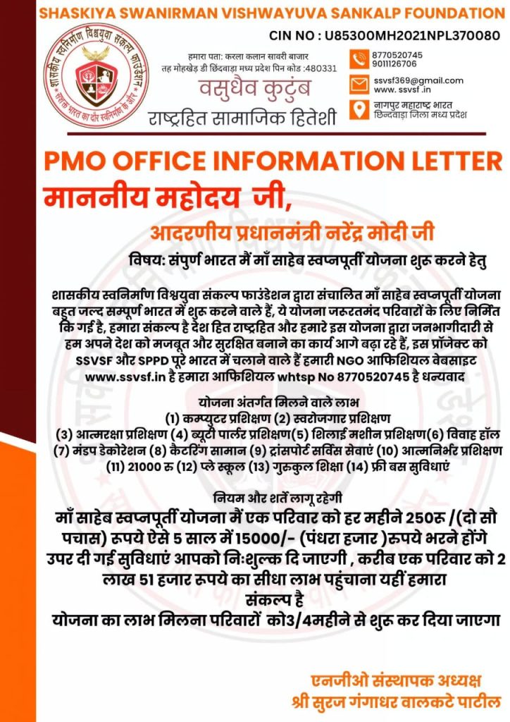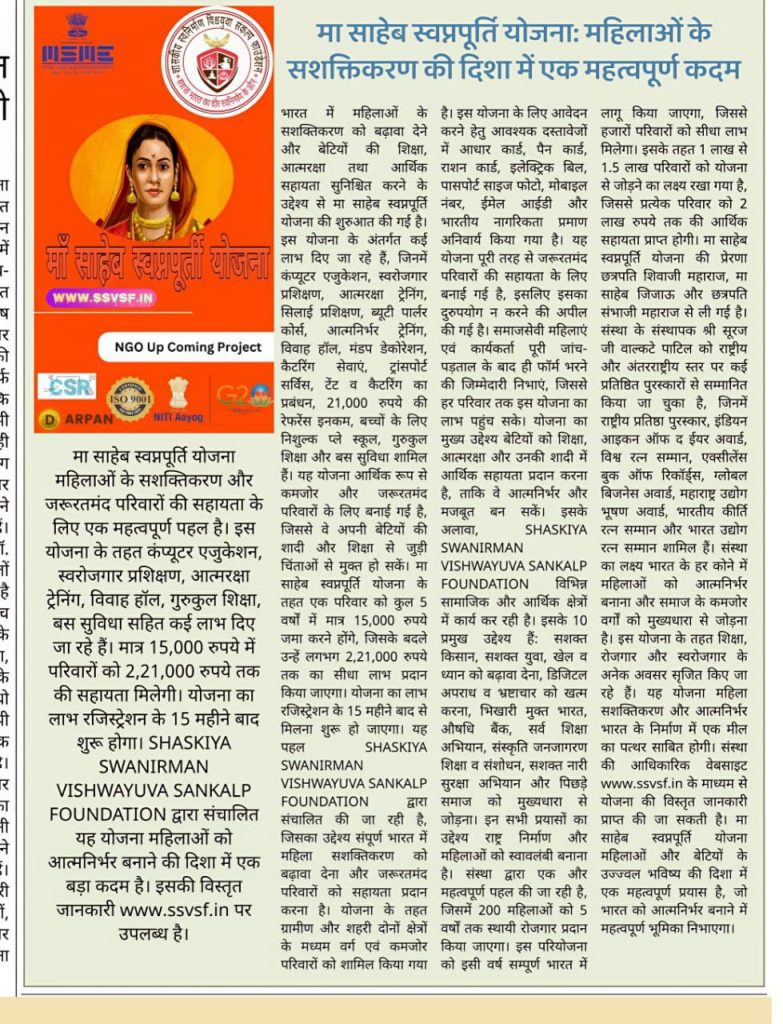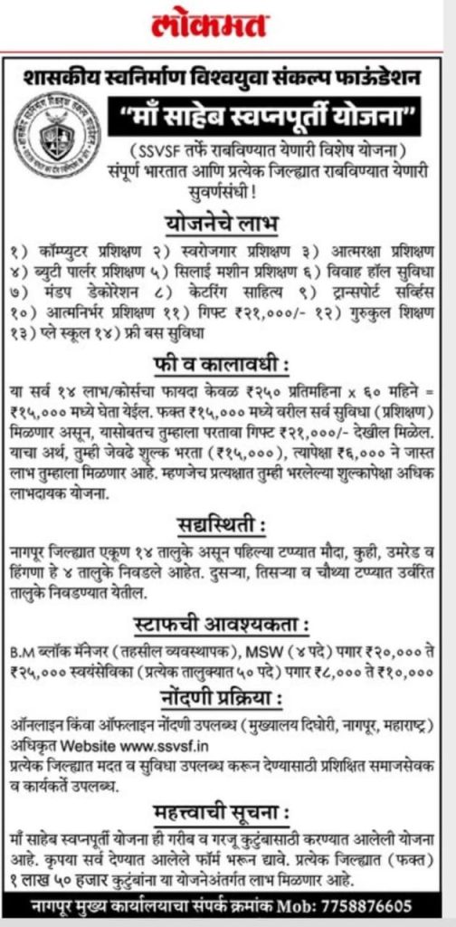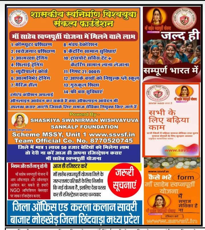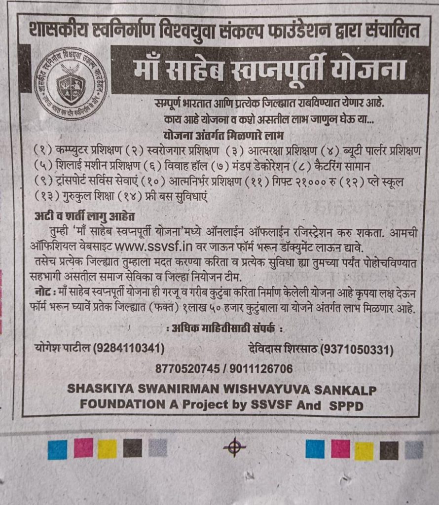 🚩 माँ साहेब स्वप्नपूर्ती योजना 🚩